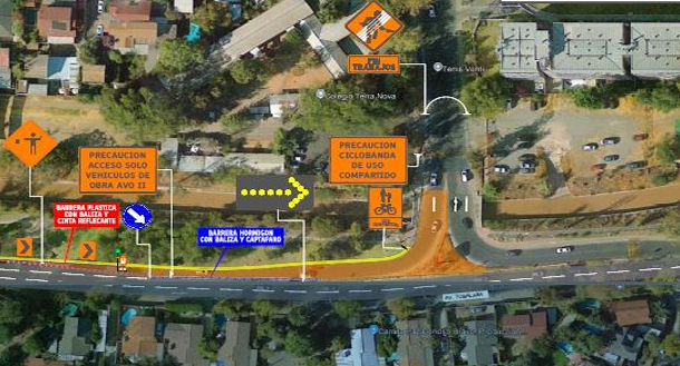 Flujo vehicular de Avenida Tobalaba al sur deberá transitar al oriente por Avenida Simón Bolivar, como próxima opción. Acceso desde Avenida Tobalaba al norponiente hacia La Cañada, estará habilitado.