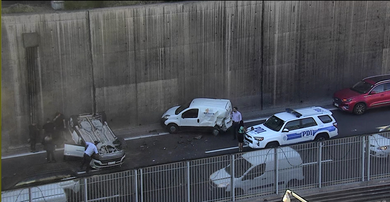 - Actualización (10:50). Todas las pistas habilitadas en Gral Velásquez al sur, próximo a Santa Margarita en , tras término de procedimiento por camión volcado. Congestión comienza a bajar.